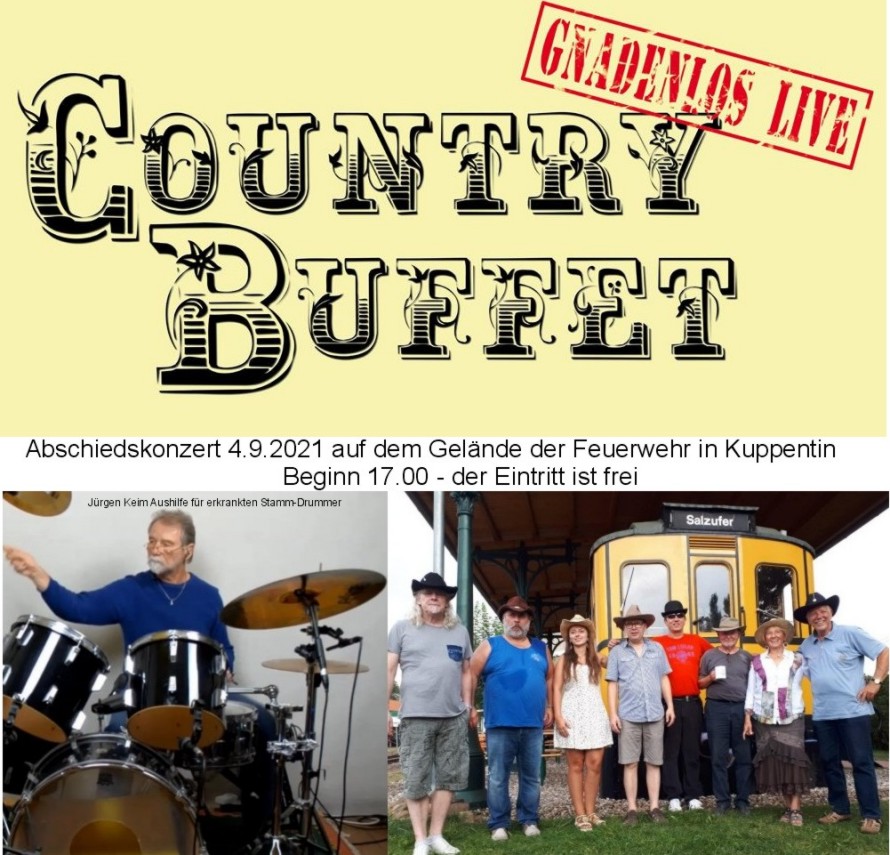 Am 25.9.2021 war ich wieder als Drummer mit Country Buffet unterwegs.